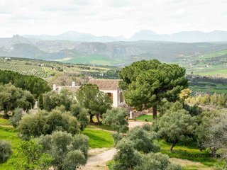 The porch/terrace has stunning views of the estate and the Sierra de Grazalema, along with a variety of seating areas. It offers a familiar and private atmosphere, and the possibility of having a quiet breakfast or watching a sunset while enjoying a typical wine of the area. Cortijo LA Almazara is the perfect place to organize a family vacation or a romantic getaway overlooking one of the most beautiful places in Andalusia.